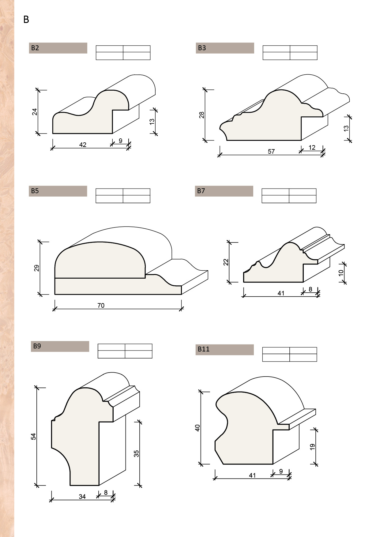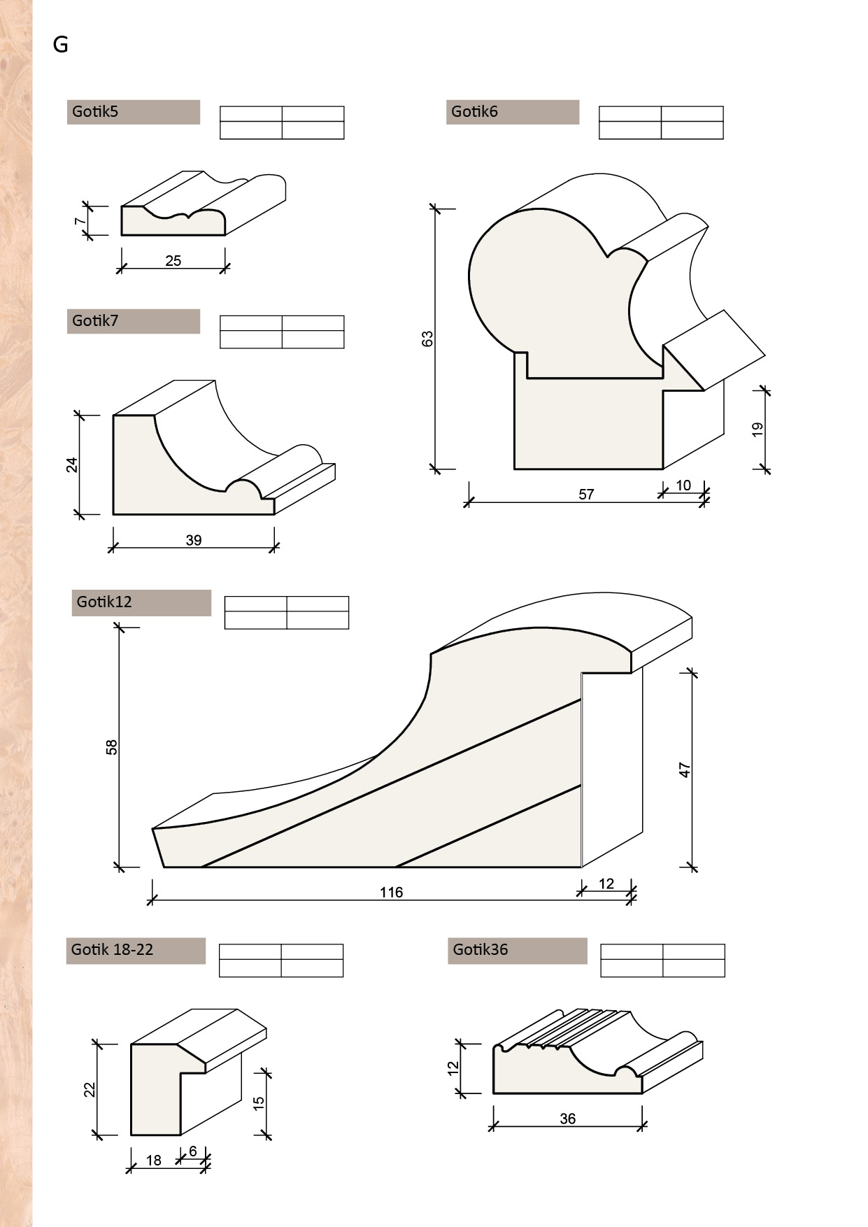 Quer durch alle Epochen finden Sie verschiedenste Profile für Vergolder und Rahmenbauer. Wir fertigen hauptsächlich in Massivholz, Linde oder MDF, aber natürlich produzieren wir auch in verschiedensten anderen Holzarten.