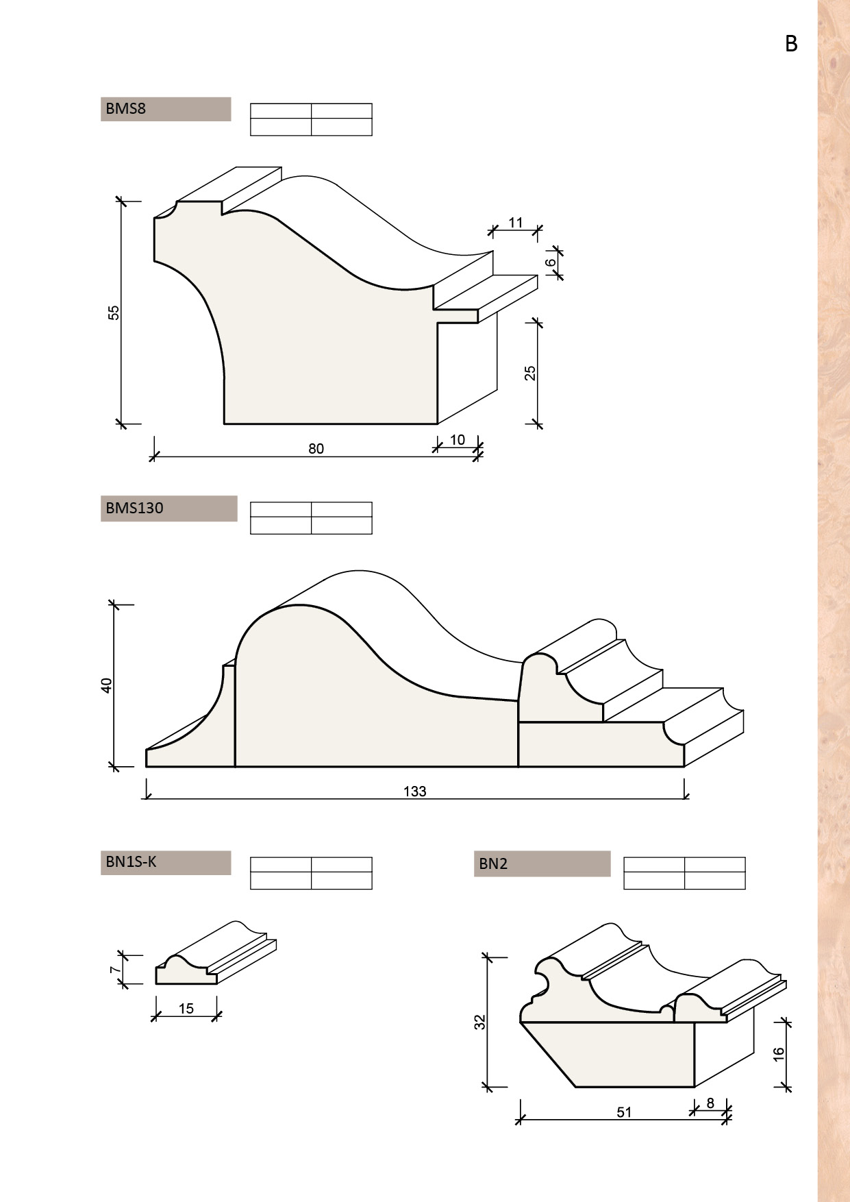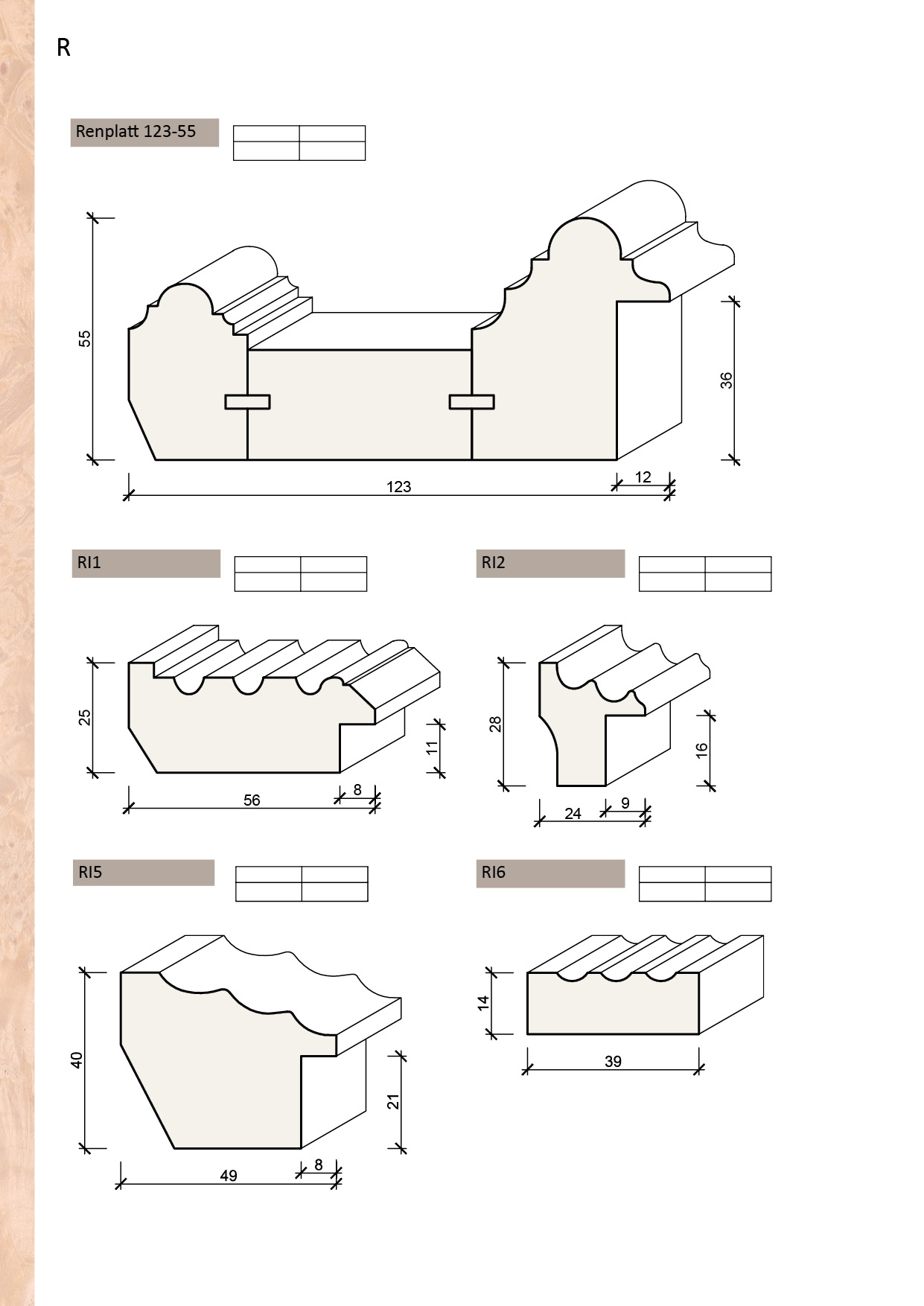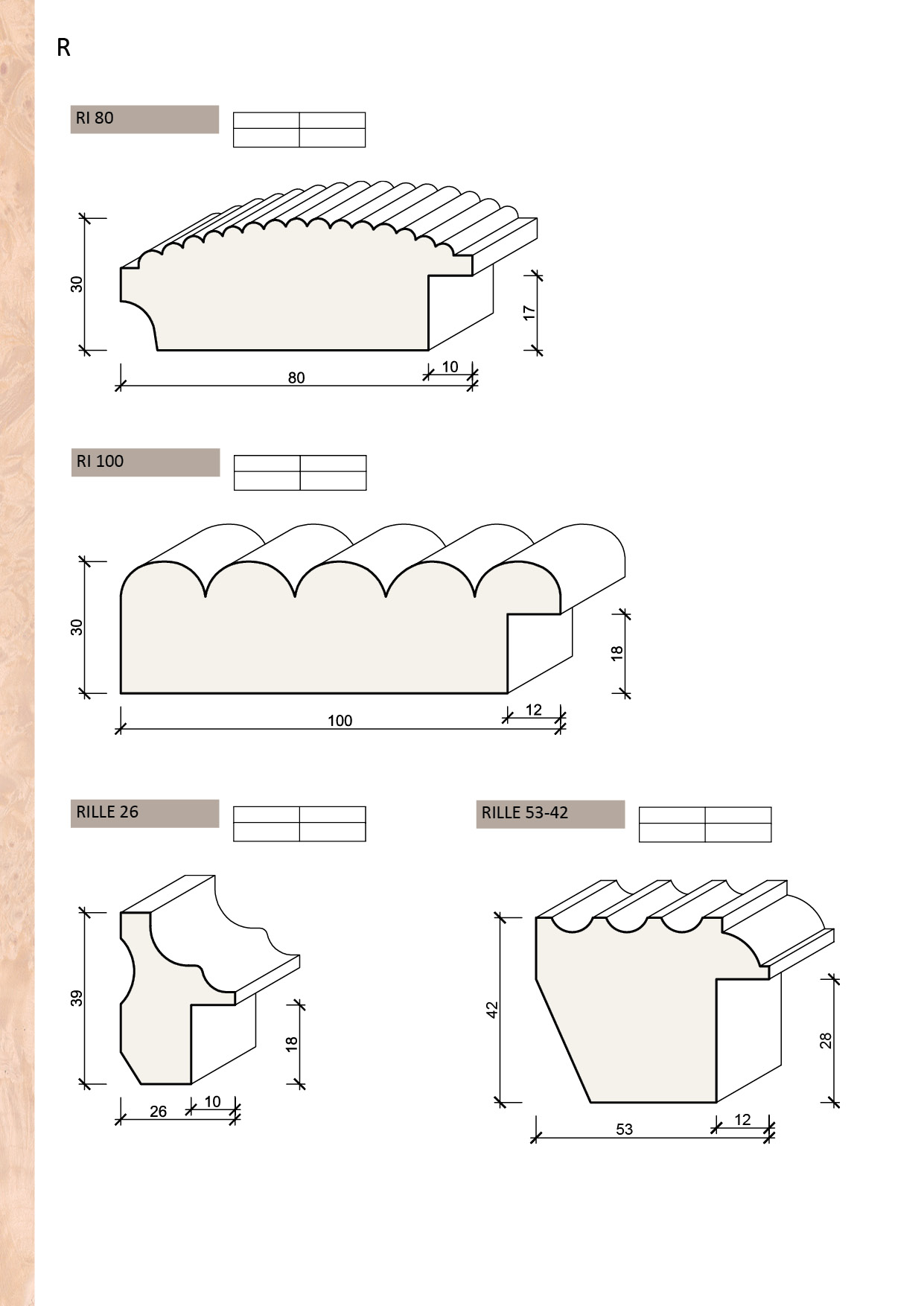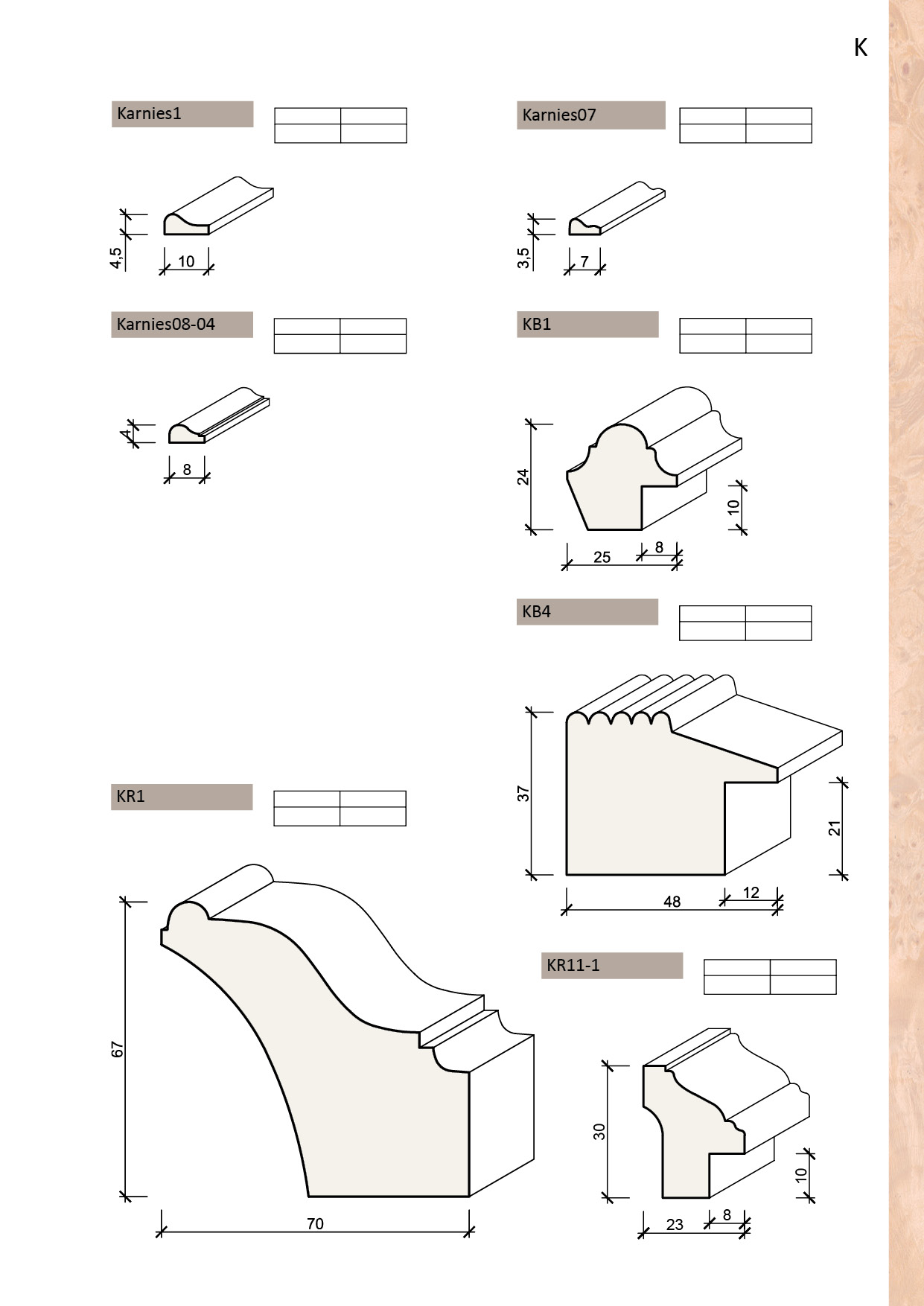 Flach- und Rillenleisten, Albertina-, Walde- und Hoffmannleisten, Profilleisten für Plattenrahmen, Kanneluren Leisten, Zahnleisten;…