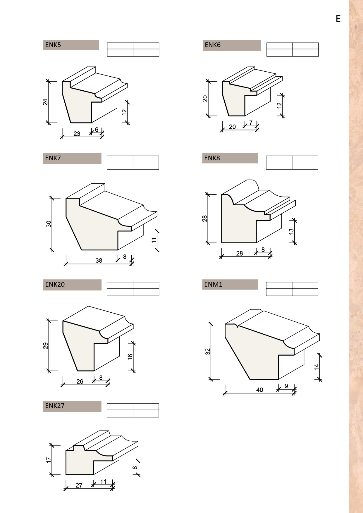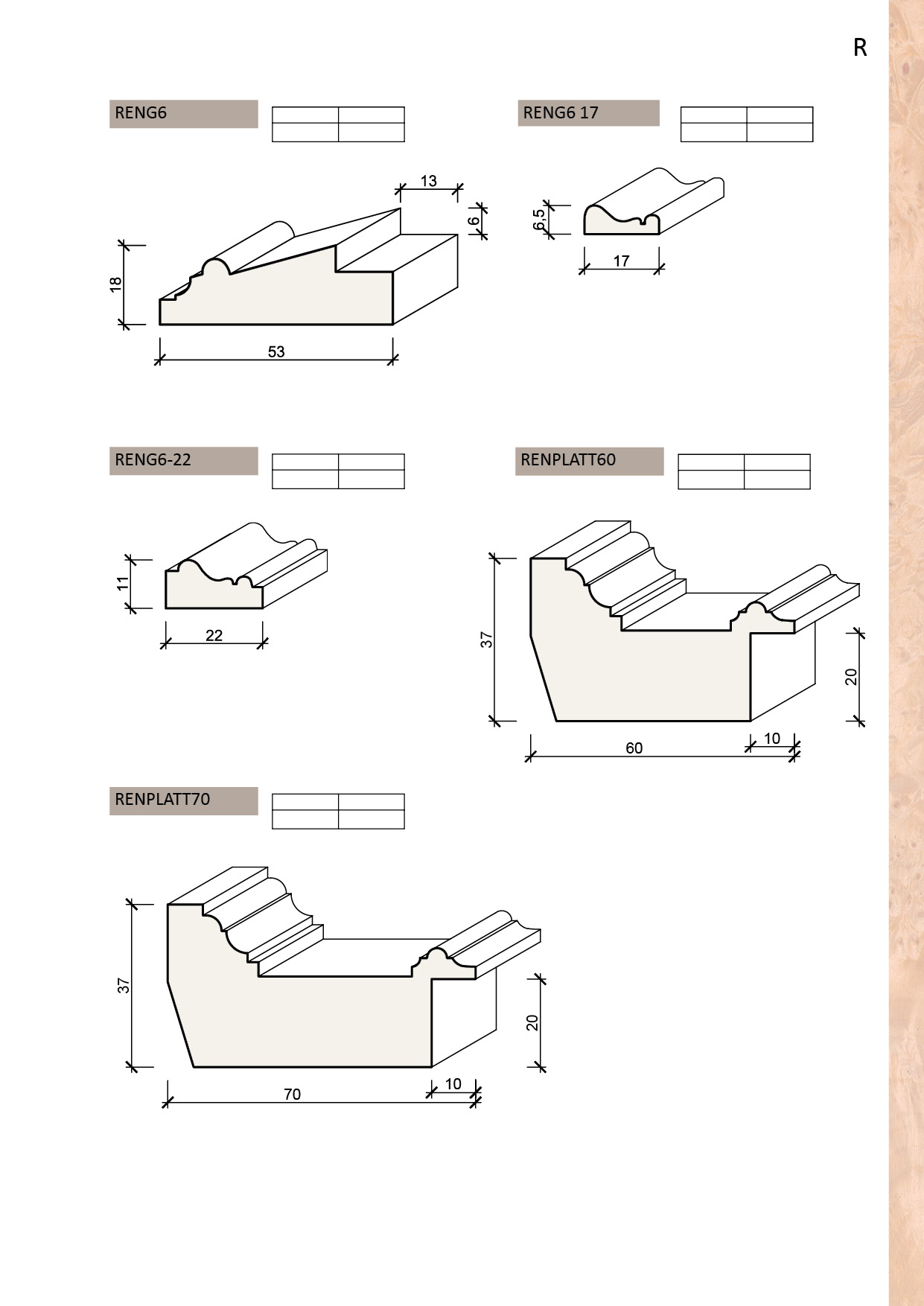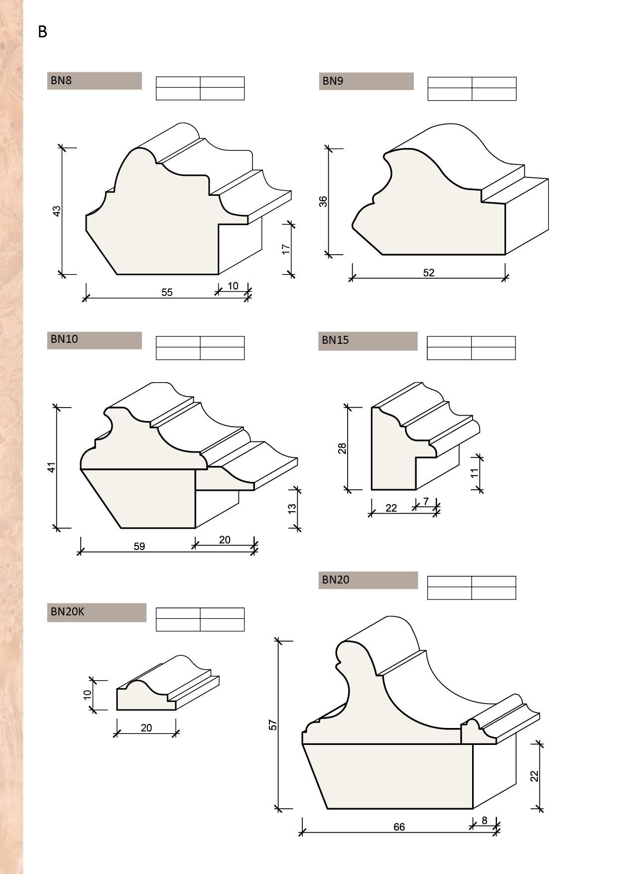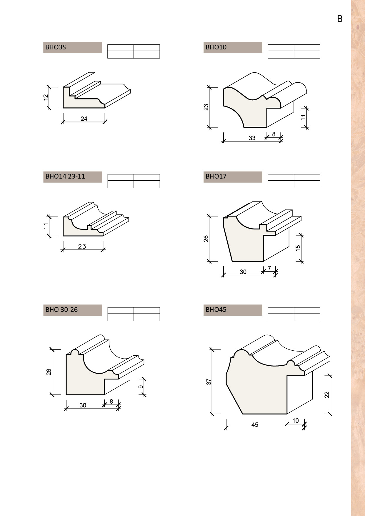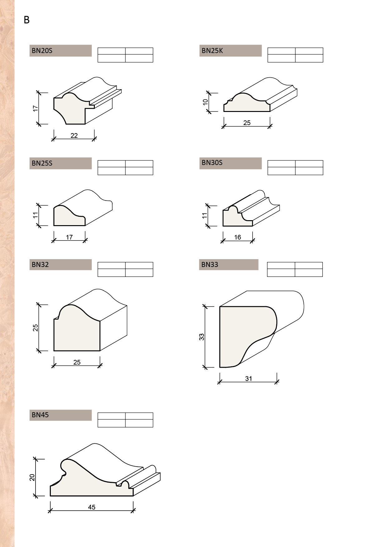 Flach- und Rillenleisten, Albertina-, Walde- und Hoffmannleisten, Profilleisten für Plattenrahmen, Kanneluren Leisten, Zahnleisten;…