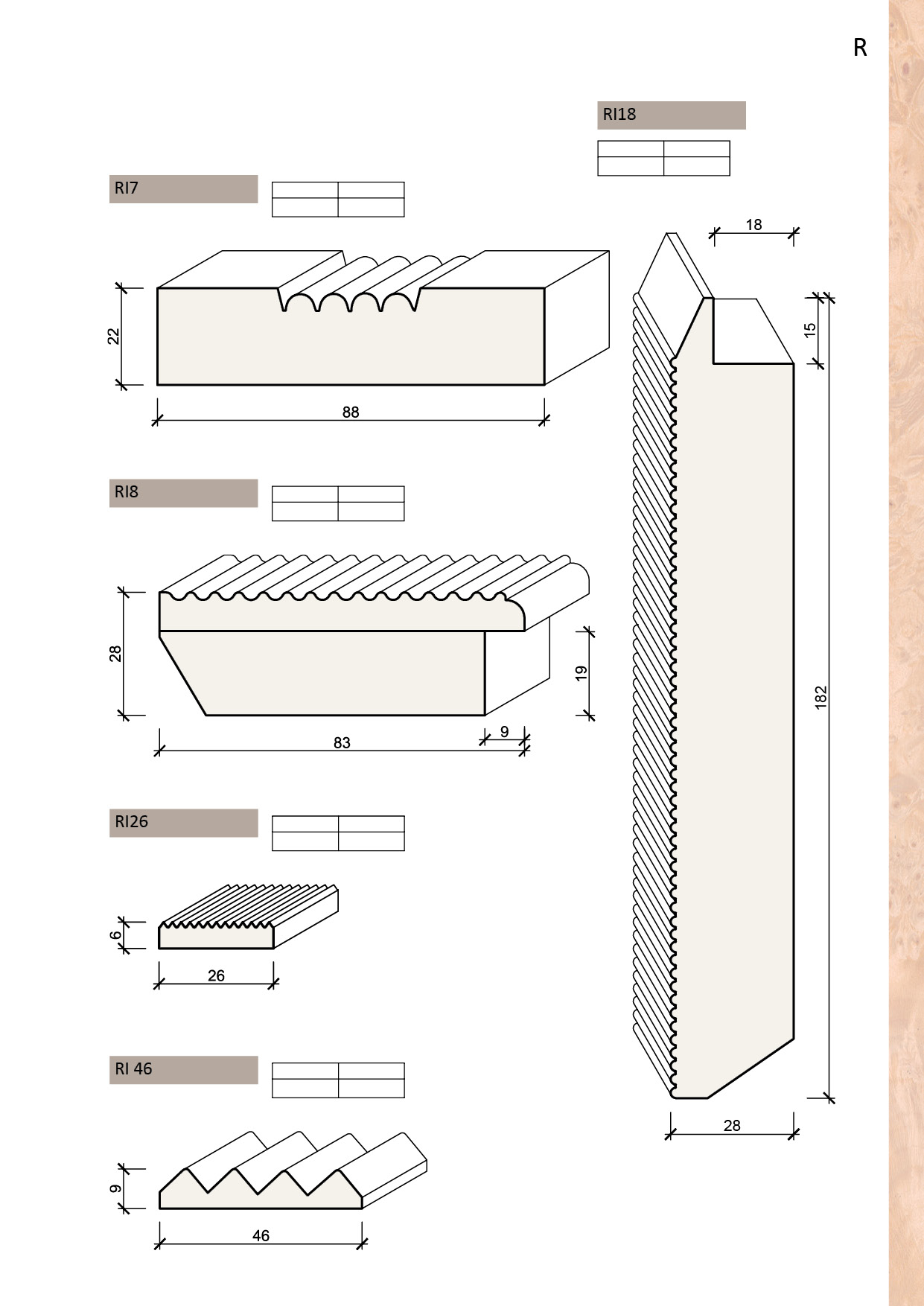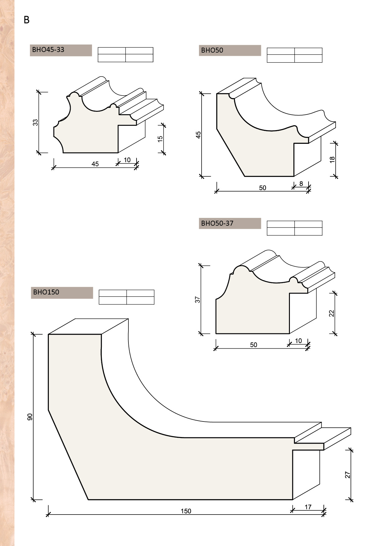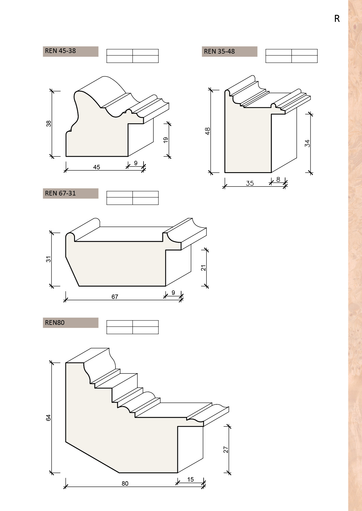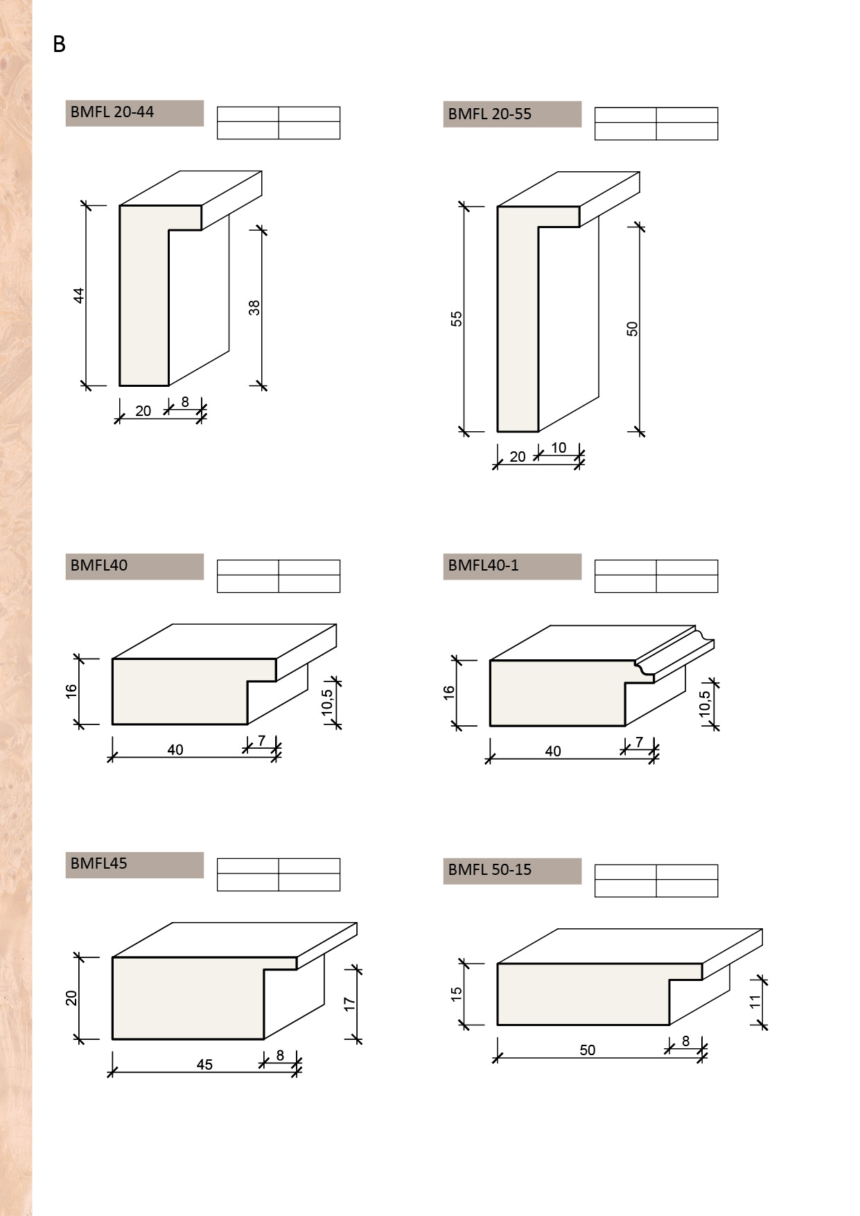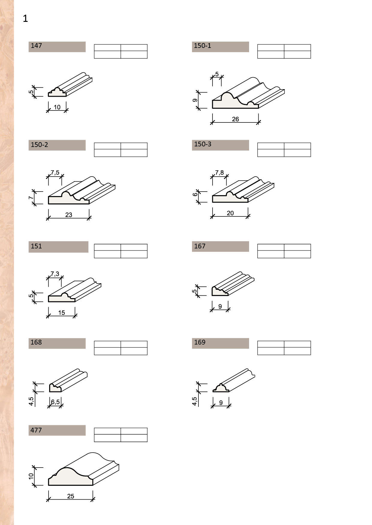 Flach- und Rillenleisten, Albertina-, Walde- und Hoffmannleisten, Profilleisten für Plattenrahmen, Kanneluren Leisten, Zahnleisten;…